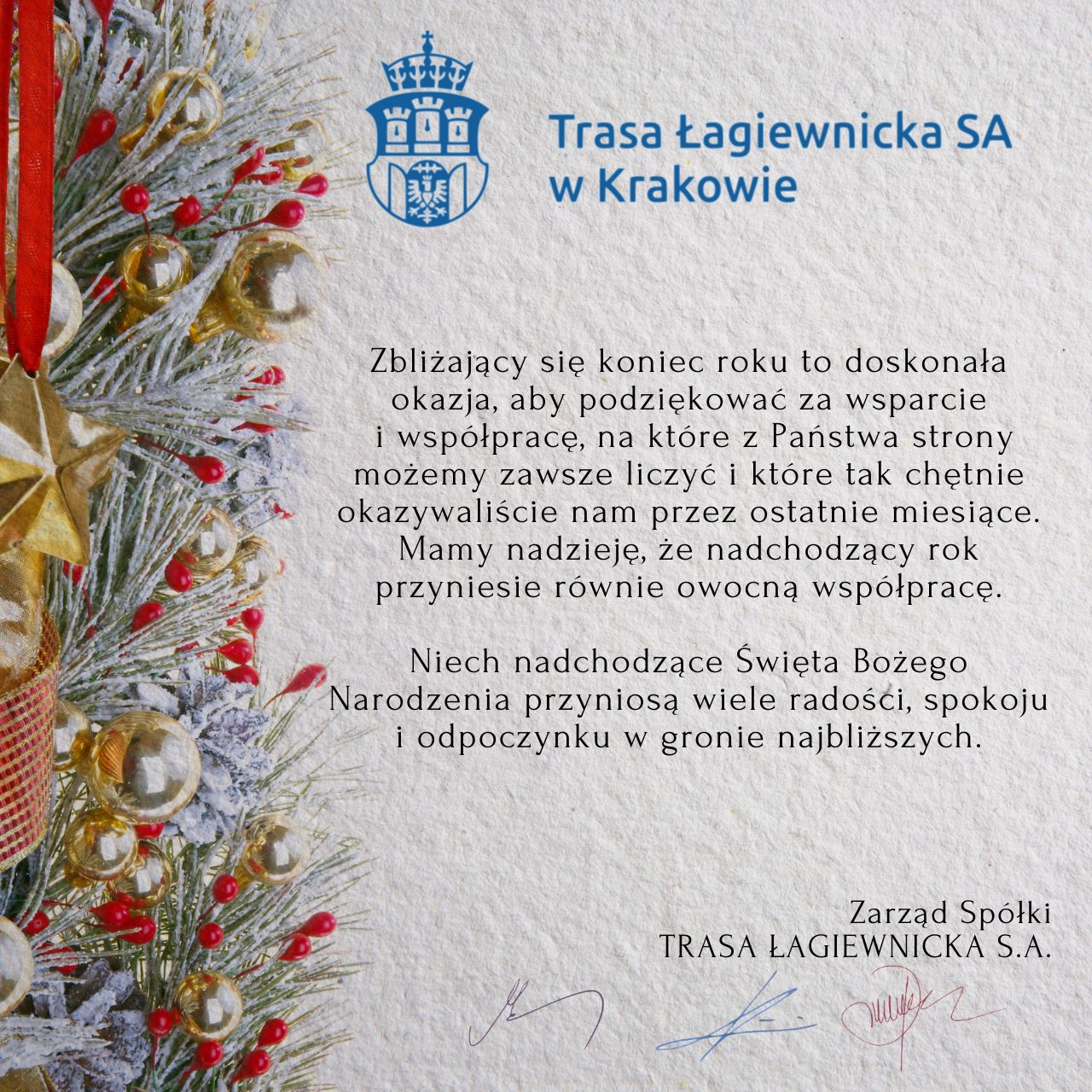 Życzenia Świąteczne od Trasy Łagiewnickiej SA