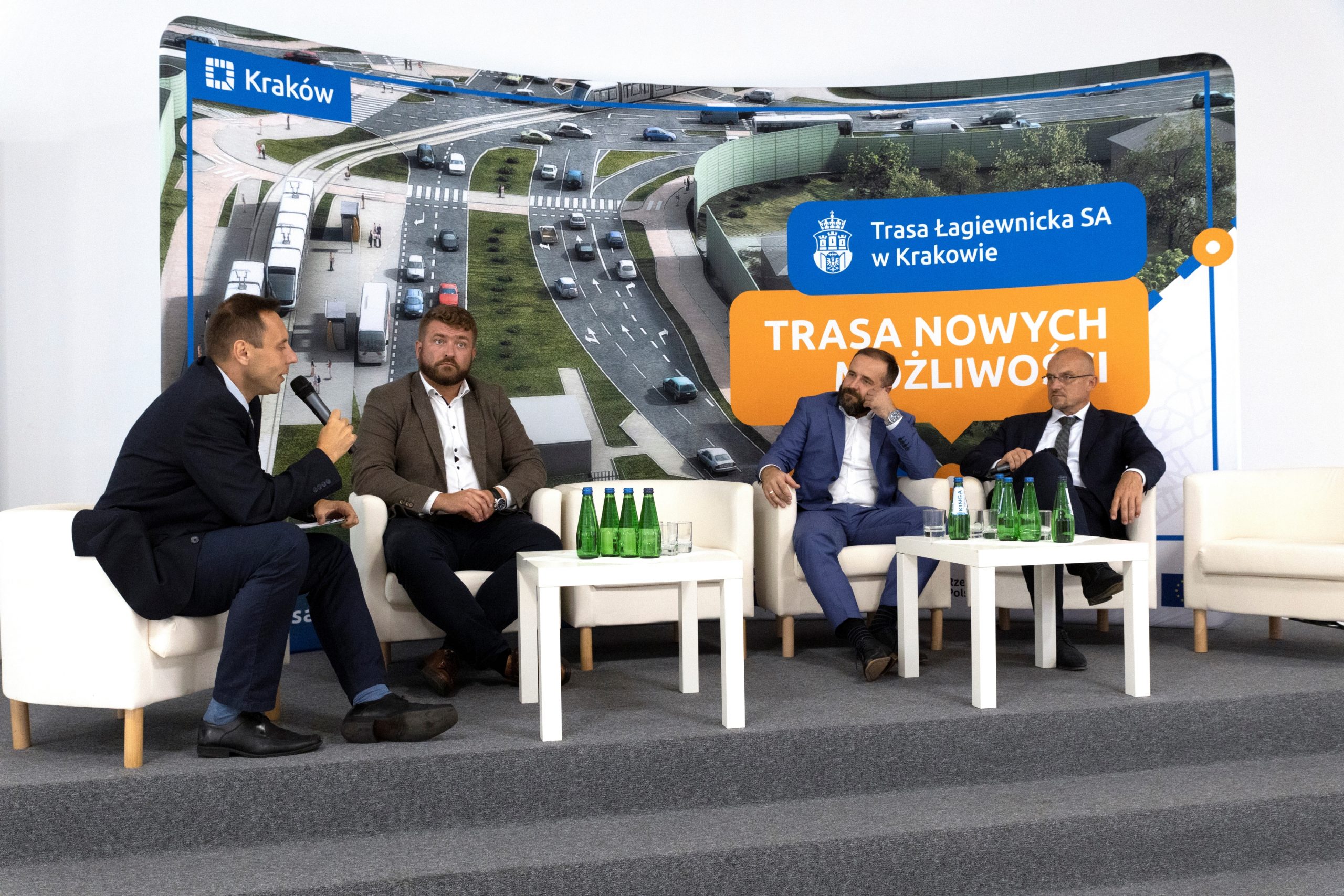To właśnie ta inwestycja była tematem dyskusji w Centrum Jana Pawła II na Białych Morzach, w której udział wzięli przedstawiciele władz Krakowa, kierownictwo spółki Trasa Łagiewnicka S.A., reprezentanci generalnego wykonawcy firmy Budimex S.A., podmiotów finansujących to przedsięwzięcie oraz ekspertów w zakresie transportu. – Trasa Łagiewnicka to największa w Polsce inwestycja samorządowa, która na naszych oczach nabiera kształtów. To ogromne przedsięwzięcie, które pomimo trudności udało się zrealizować w sposób przyjazny dla mieszkańców – mówił I Zastępca Prezydenta Krakowa Andrzej Kulig. Podkreślił, że zebrane podczas realizacji Trasy Łagiewnickiej doświadczenia przydadzą się przy realizacji innych kluczowych dla miasta inwestycji.