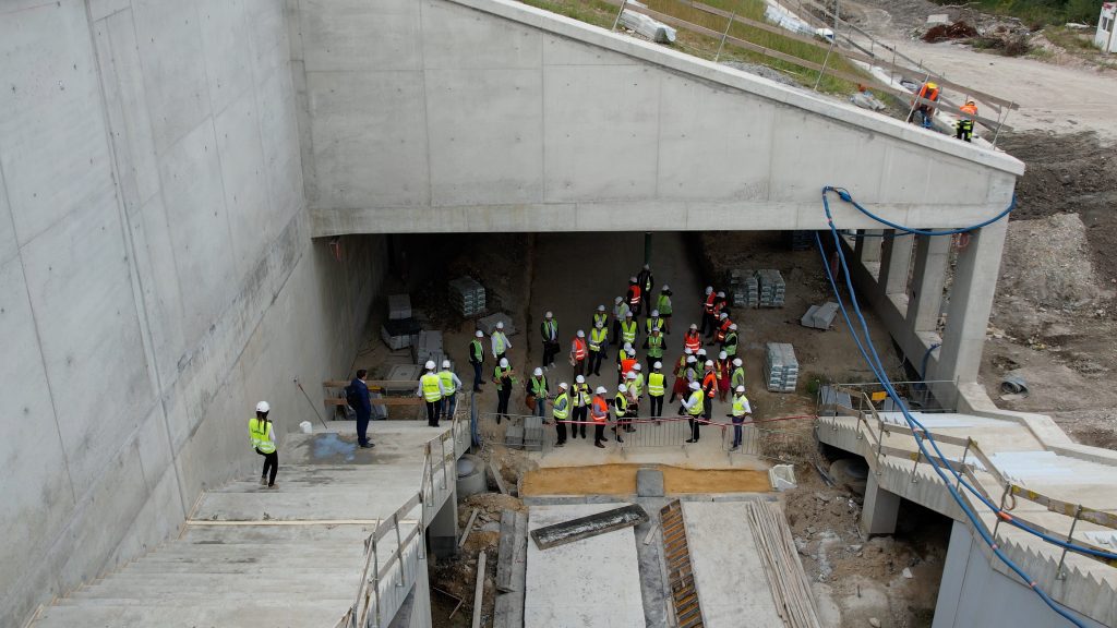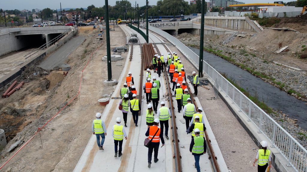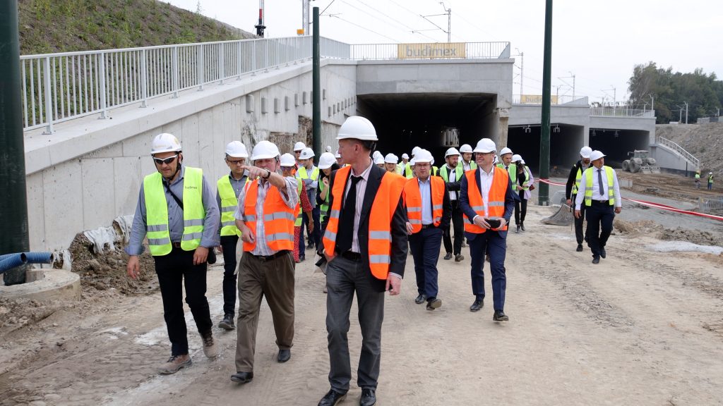 Z przebiegiem trasy drogowej i tramwajowej oraz ze szczegółami zastosowanych rozwiązań zapoznał gości i ekspertów Członek Zarządu – Inżynier Kontraktu Krzysztof Migdał. Wspólnie z przedstawicielem generalnego wykonawcy Panem Maciejem Lorencem wskazali na trudności związane z procesem przygotowania oraz realizacji inwestycji, w szczególności odnosząc się do ostatnich wydarzeń związanych z wpływem pandemii koronawirusa oraz wpływem zmian klimatycznych.