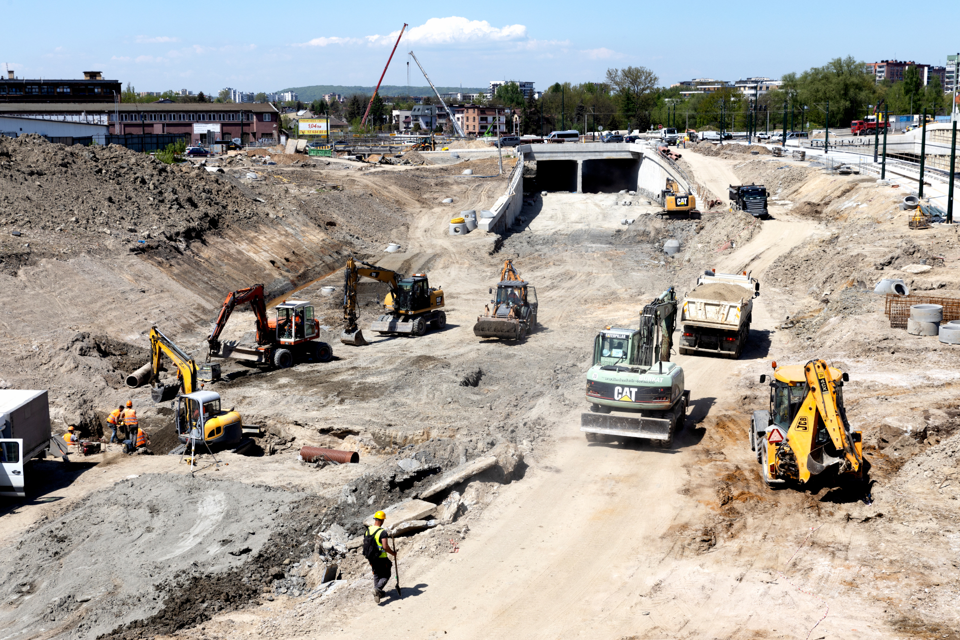 Prace związane z budową Trasy Łagiewnickiej prowadzone są obecnie na całym placu budowy. Do kwietnia inspektorzy nadzorujący budowę zauważyli mniejsze niż zakładano tempo prac. Spowolnienie jest na tyle poważne, że Wykonawca musiał opracować program naprawczy.